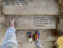 Some say Long’uro is a “special needs” elephant. When I met this determined little fellow, he was having his bottle. Once he had chugged that back, he moved on to his pellets. (Because he cannot yet use his truck to forage, the pellets are a supplement to his diet.) He used his trunk to maneuver his treats, arranging them so it was easier to push them in his mouth. Watching his determination–and success–at eating his snack, it occurred to me that Long’uro was adapting to his “new normals” and living his best life! I could not stop smiling at this enthusiastic young elephant with his ears flapping and his abbreviated trunk, enjoying his food. I do believe there was a certain little spirit with me on my shoulder, cheering him on!